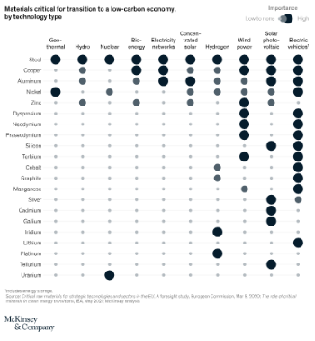 Figure 2. Qualitative importance of critical elements in common Net Zero technologies.