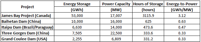 Table 1. Comparison of the energy storage capacity of the James Bay Project relative to its global peer projects.