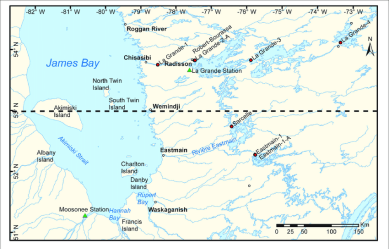 Figure 3. Distribution of reservoirs part of the James Bay Project.